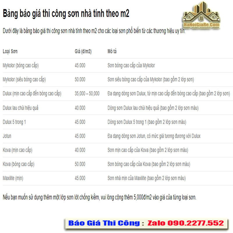 Báo giá sơn nhà trọn gói tại Dịch Vụ Sơn Nhà Hà Nội Giá Rẻ: