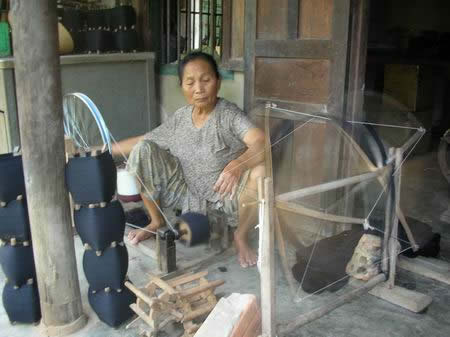Quay sợi trước khi đưa vào khung cửi để dệt.