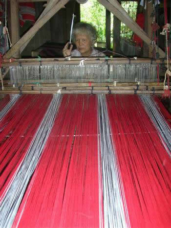 Vải thổ cẩm được dệt theo phương thức của người kinh, trên những chiếc khung cửi gia truyền có tuổi đời gần 2/3 thế kỷ.