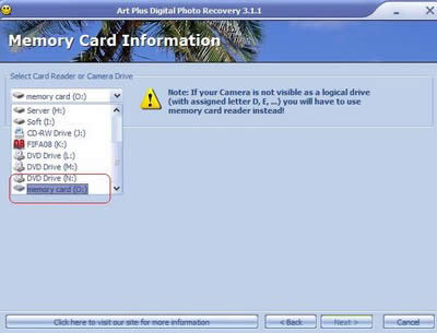 Art Plus Digital Photo Recoverty là tiện ích cho phép khôi phục lại những hình ảnh bị mất do bạn xóa hoặc format nhầm thẻ nhớ. Thậm chí chương trình còn có thể giúp bạn khôi phục những hình ảnh bị mất trên thẻ nhớ bị hỏng (trong trường hợp thẻ nhớ vẫn còn được Windows nhận ra). Art Plus Digital tương thích với toàn bộ các loại thẻ nhớ hiện tại trên thị trường (memory card của điện thoại, máy ảnh, máy quay và thậm chí là cả USB đơn thuần).