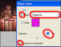 2. Nếu muốn chọn màu đỏ tươi như trong hình 1, hãy chọn Magenta trong cửa sổ Filter và sắc độ (Density) ở khoảng 51.