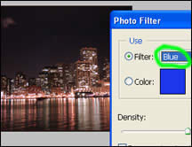 3. Bên cạnh Magenta, một lựa chọn lọc màu khác có thể áp dụng cho ảnh chụp đêm là Blue Photo Filter.