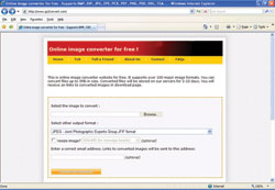 Hiện tại trang web hỗ trợ hơn 100 định dạng hình ảnh thông dụng nhất hiện nay như BMP, DIB, EPI, EPS, GIF, JPC, JPEG, PCD, PCX, PDB, PDF, PGM, PICT, PNG, PSD, SVG, TGA... Ngay sau khi vào trang web, bạn chỉ cần bấm vào nút Browse trong khung Select the image to convert rồi chọn file ảnh trên máy cần chuyển đổi. Tiếp theo chọn định dạng ảnh cần chuyển đổi tại tùy mục Select other output format, nếu muốn thay đổi kích thước file ảnh thì vào resize image, tiếp theo nhập địa chỉ e-mail để nhận file ảnh rồi bấm vào nút Convert and download.