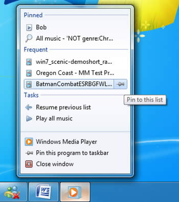 Chẳng hạn khi kích chuột phải vào biểu tượng Windows Media Player đang mở, người dùng sẽ thấy danh sách các tập tin nhạc, phim được mở trong thời gian gần đây; thư viện Library cho phép quản lý các tập tin của mình theo loại nội dung cụ thể như tài liệu, hình ảnh, nhạc, video... Mỗi Library mang một phong cách riêng phù hợp với nội dung và có thể chia sẻ với những người dùng khác thông qua tính năng mạng nhóm HomeGroup.