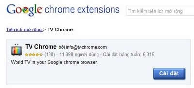 TV Chrome - Xem truyền hình trực tuyến trên Google Chrome